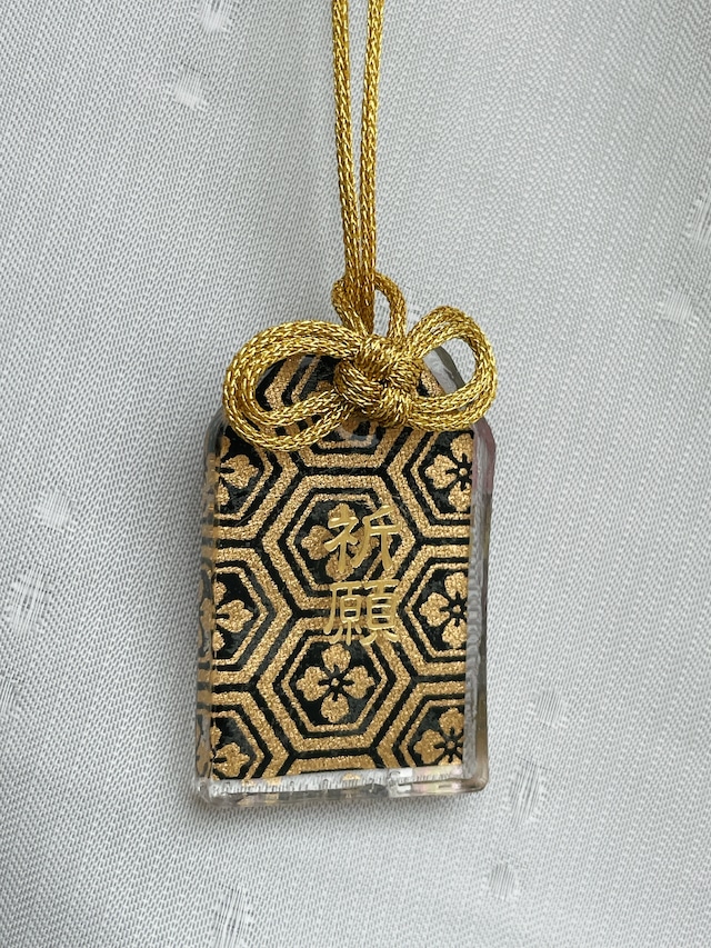■お守り ハンドメイド 亀甲模様 ゴールド 金色の亀甲模様の和紙を閉じ込めたお守りは、あなたに幸運と繁栄をもたらします!亀甲模様は厄除けや長寿を象徴し、持つ人に力強いサポートを提供してくれるでしょう。 裏面には美しい桜柄が施されており、春の訪れを感じさせるデザインが魅力です。和紙の独特な質感が持つ人に温もりをもたらし、手のひらにしっくりと馴染むサイズ感が特徴的です。 人生の新たなステージや大切な人への贈り物にもぴったりです!ハンドメイドの温かさと心を込めた製品を、ぜひお楽しみください。
