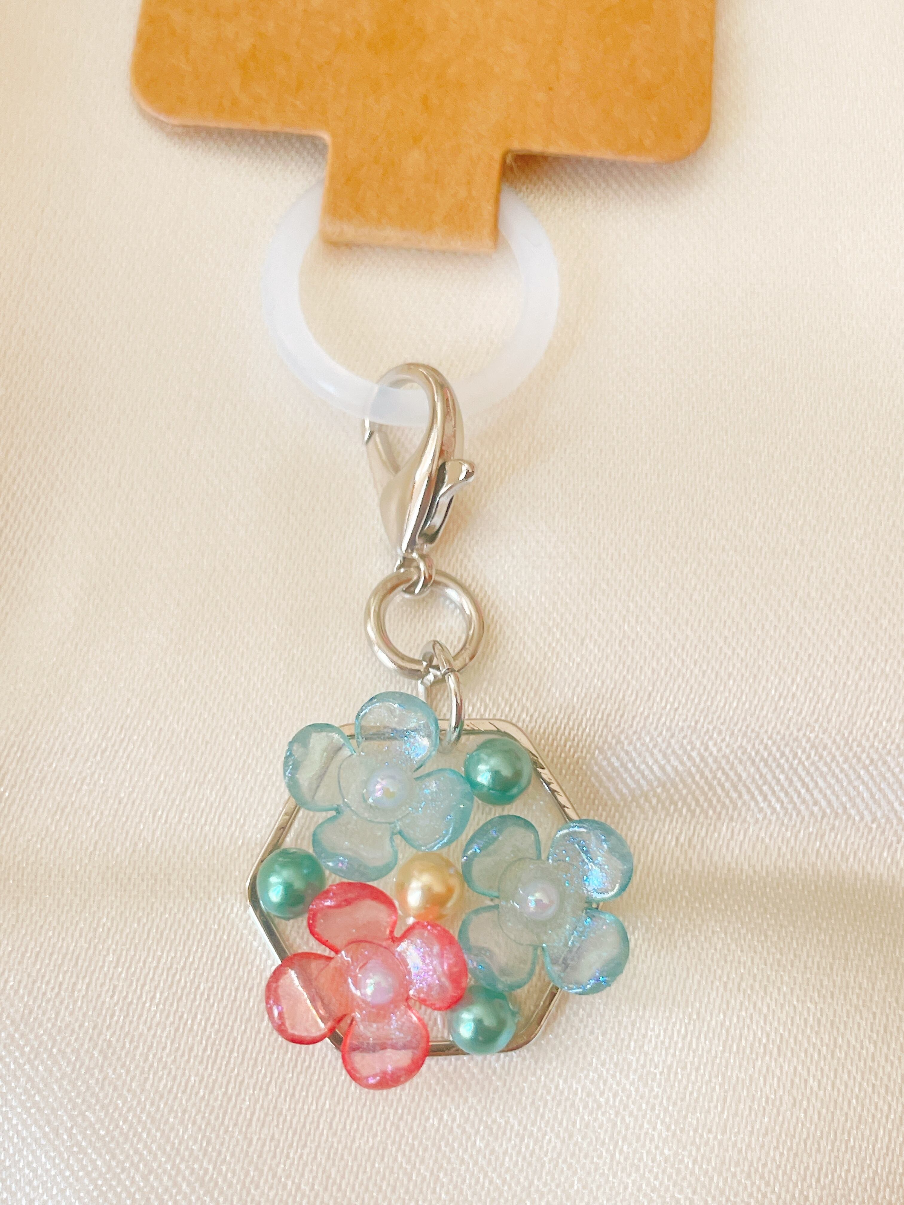めじるしチャーム 手染め国産パールとフラワー ターコイズ×レッド