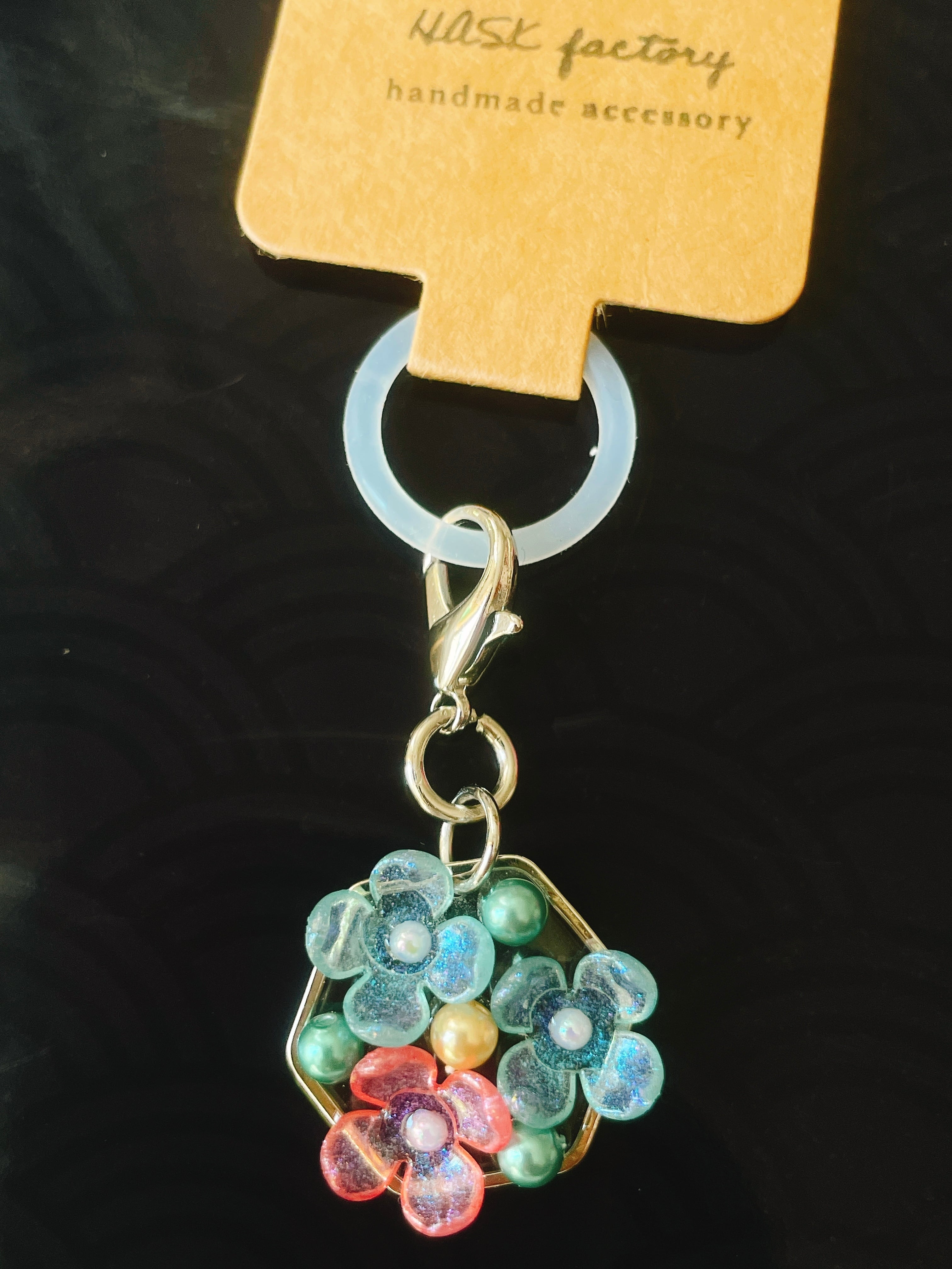 キラキラ輝く手染めの小さなお花と、アンティーク感のある色味の手染め国産パールを集めたマーカー。