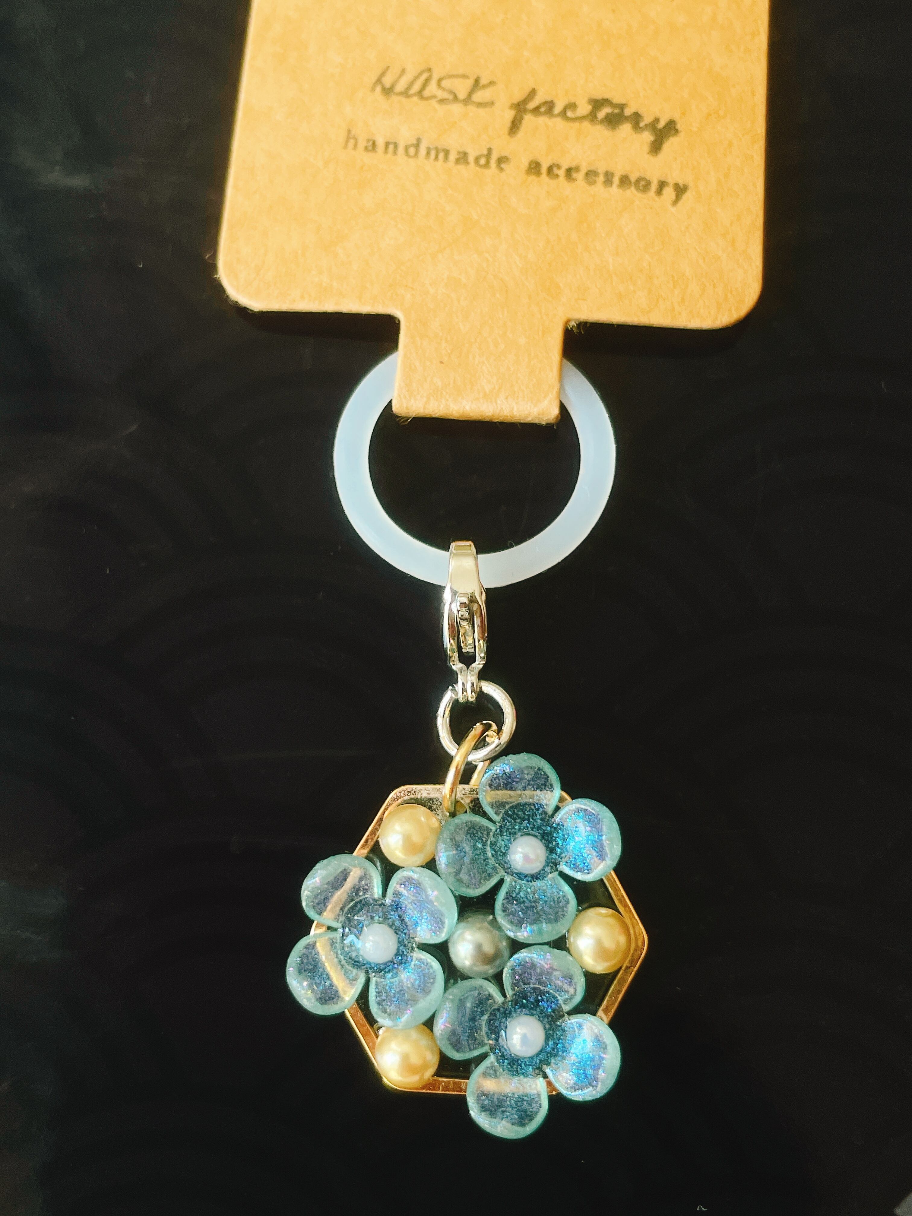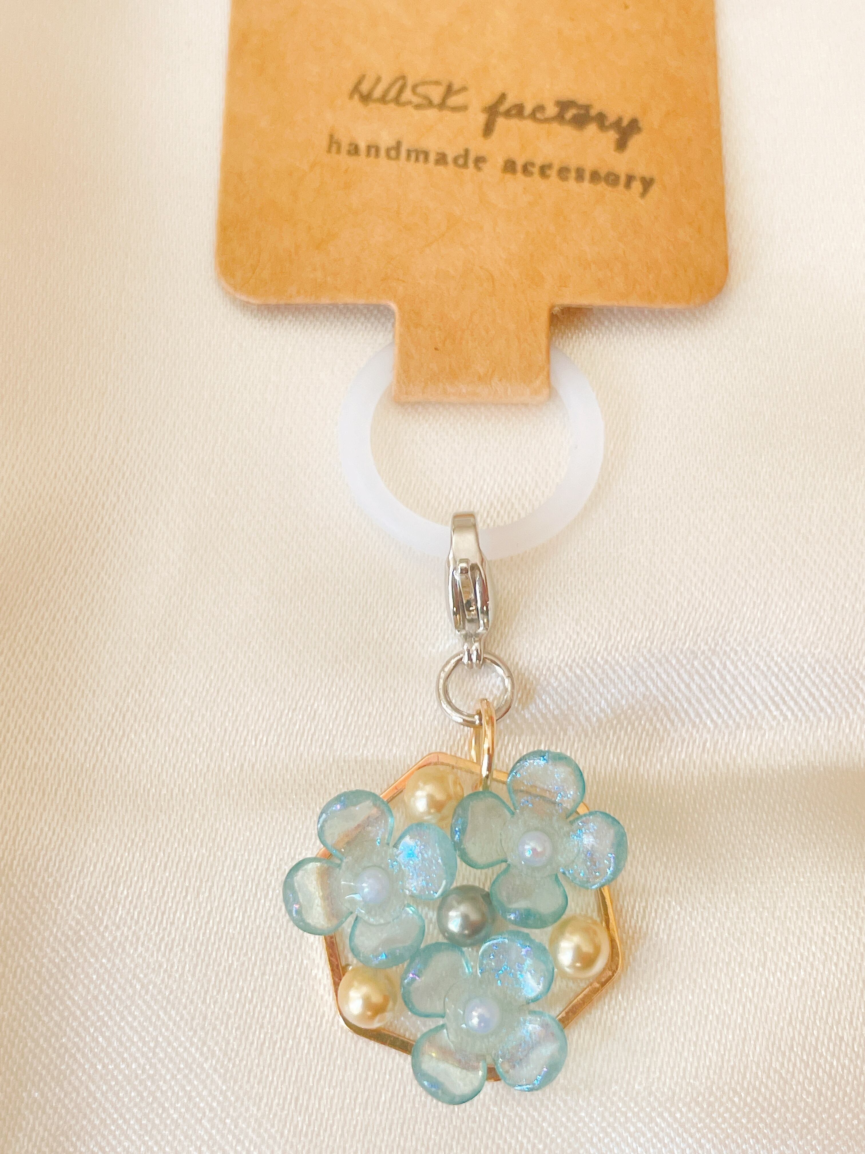 キラキラ輝く手染めの小さなお花と、アンティーク感のある色味の手染め国産パールを集めたマーカー。