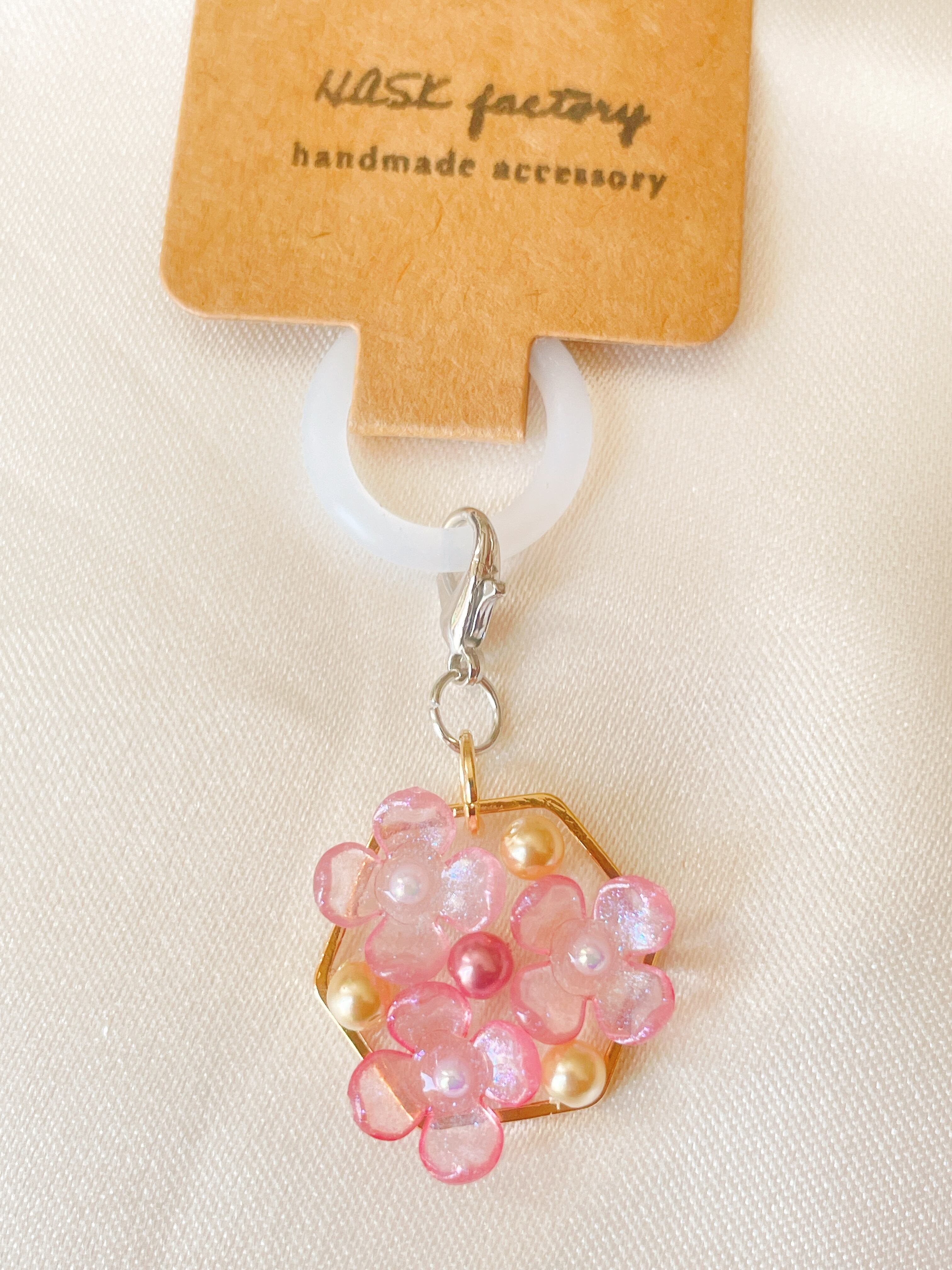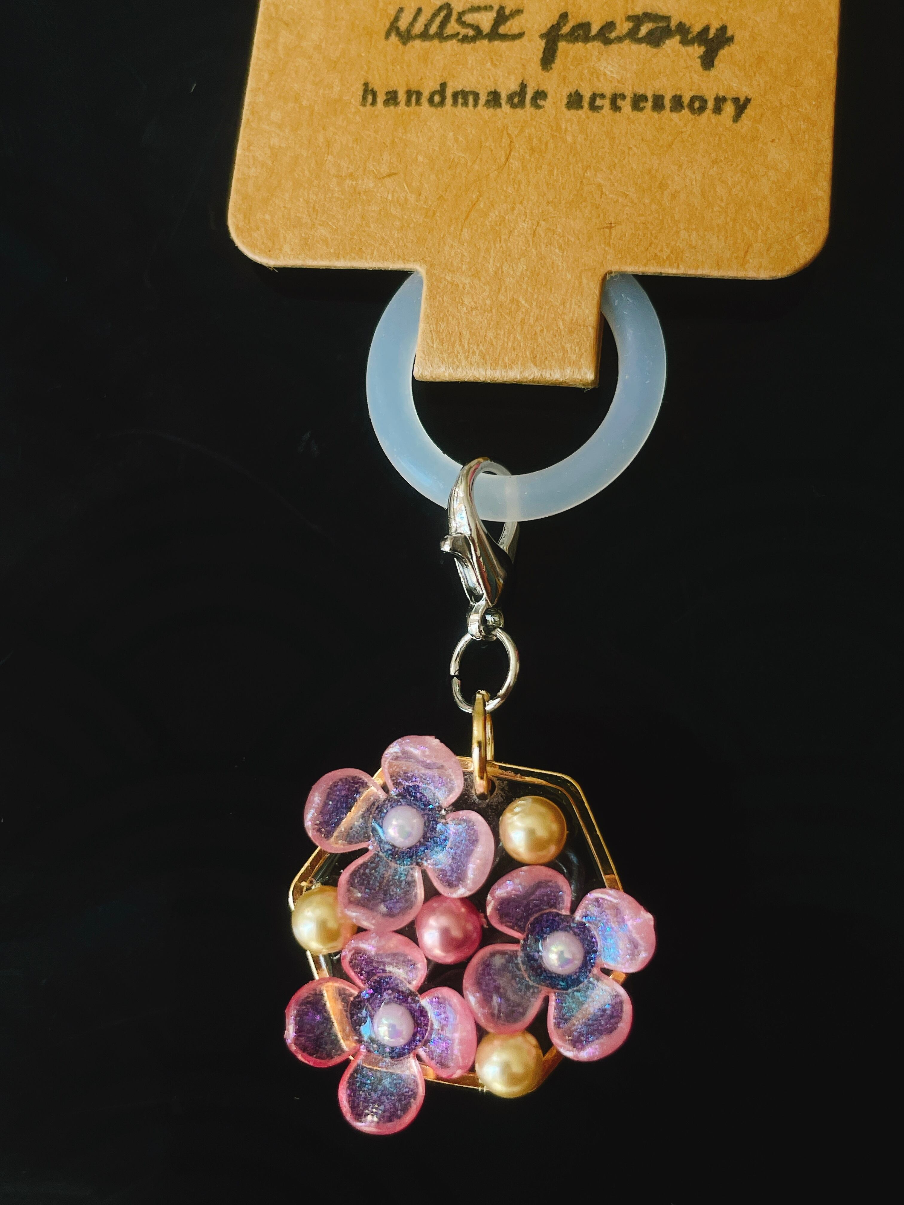 キラキラ輝く手染めの小さなお花と、アンティーク感のある色味の手染め国産パールを集めたマーカー。