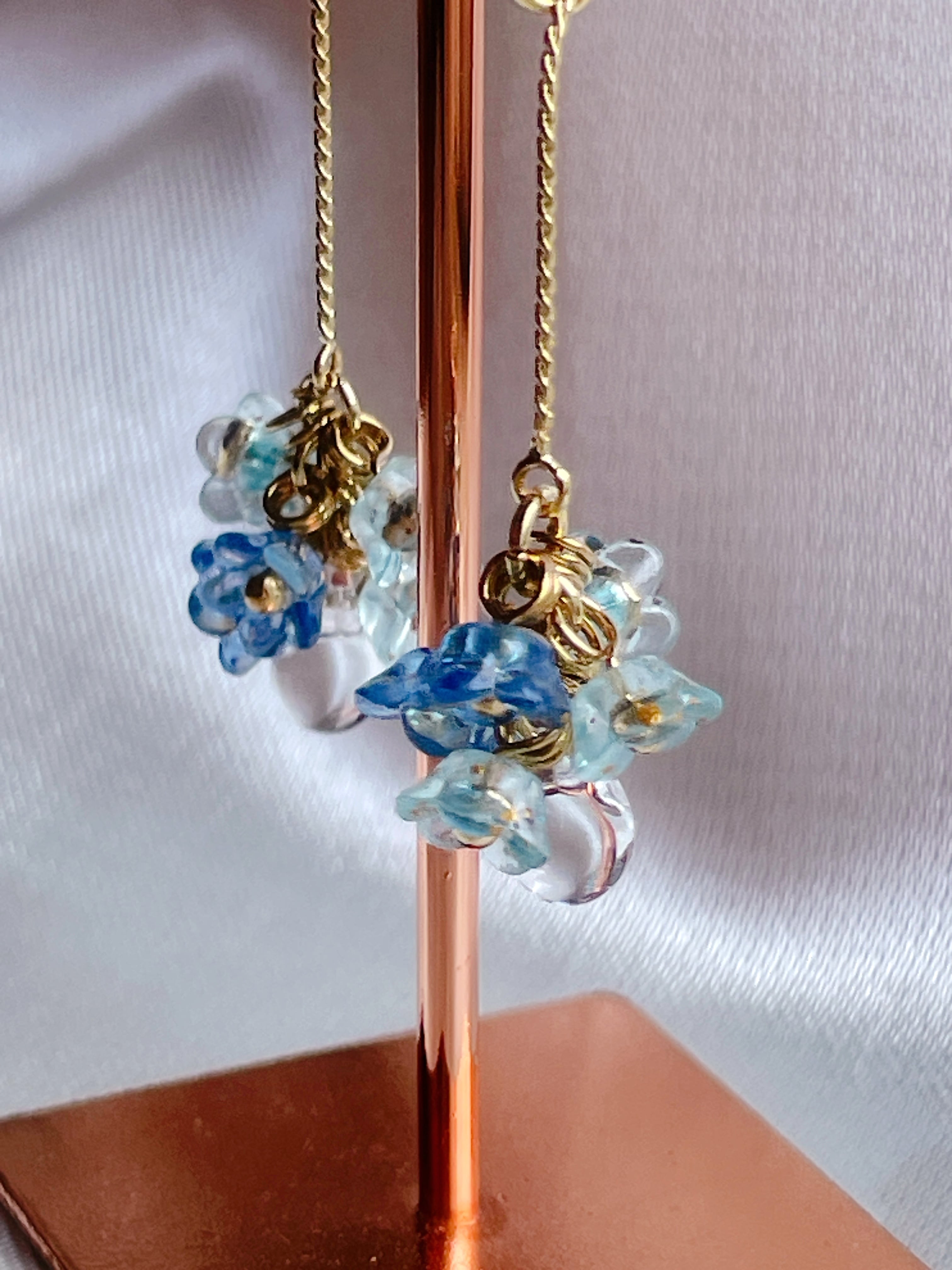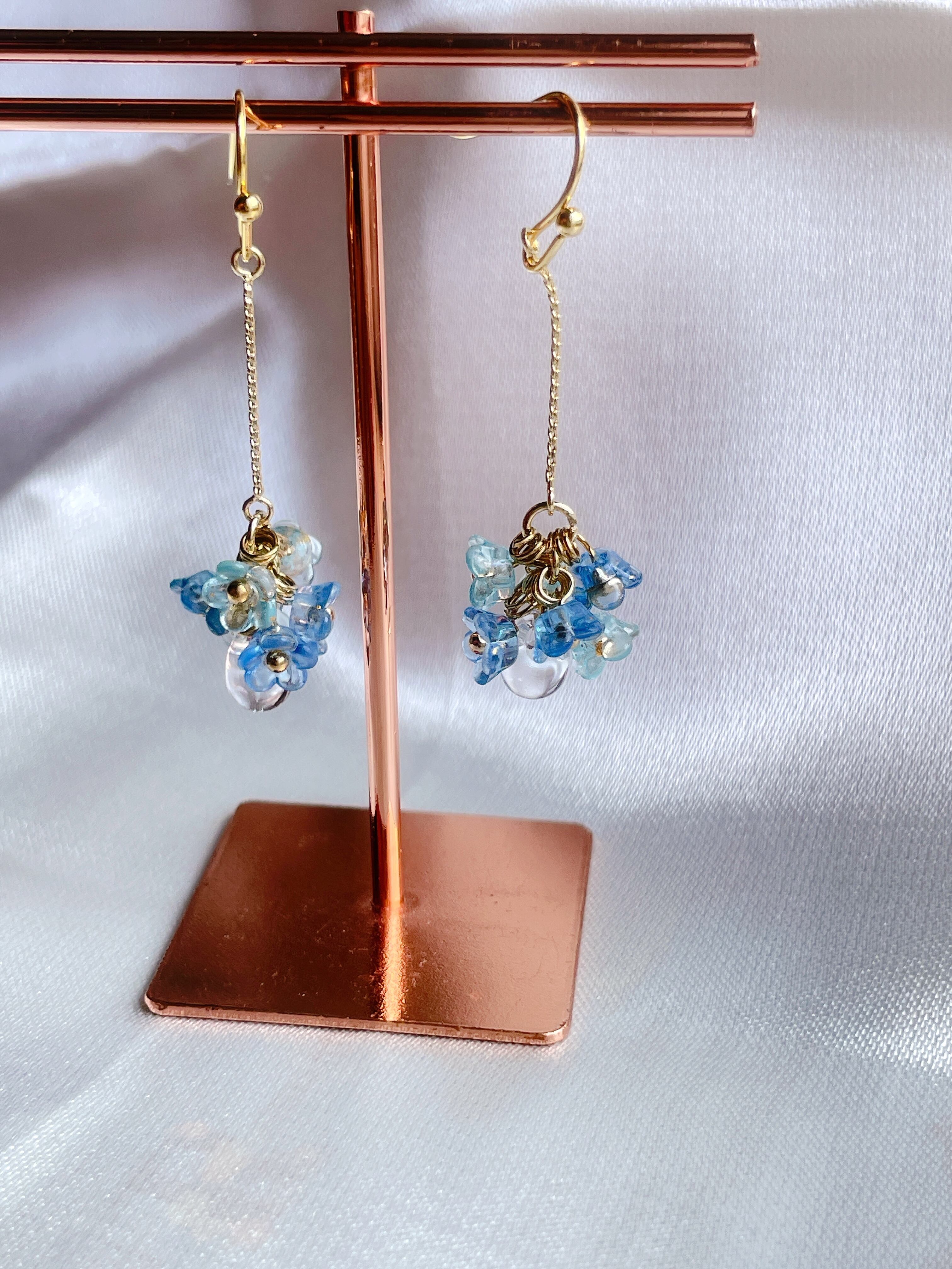 涼しげな印象を持つ「夏色の花雫」は、暑い夏にぴったりの涼やかなデザインのピアスです。