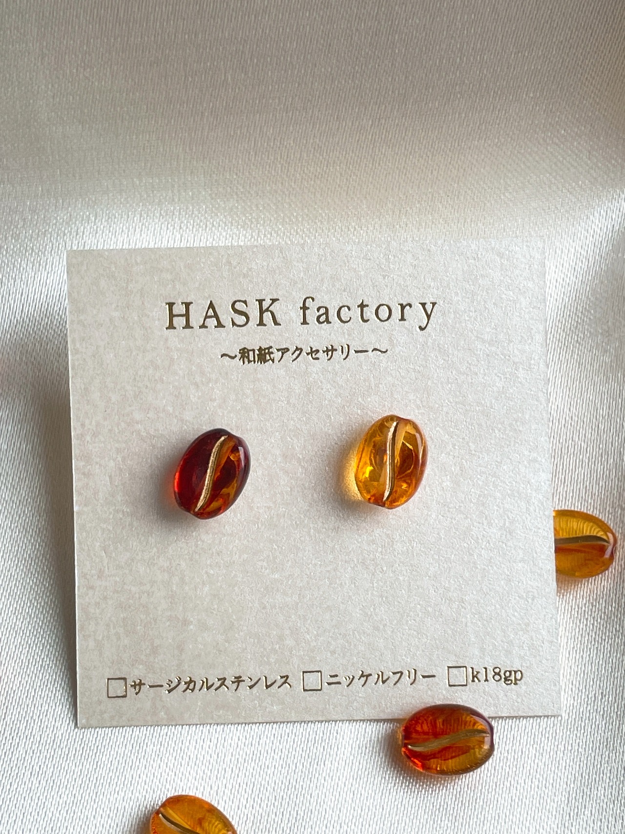 鼈甲色のコーヒー豆デザインのプチピアスです。