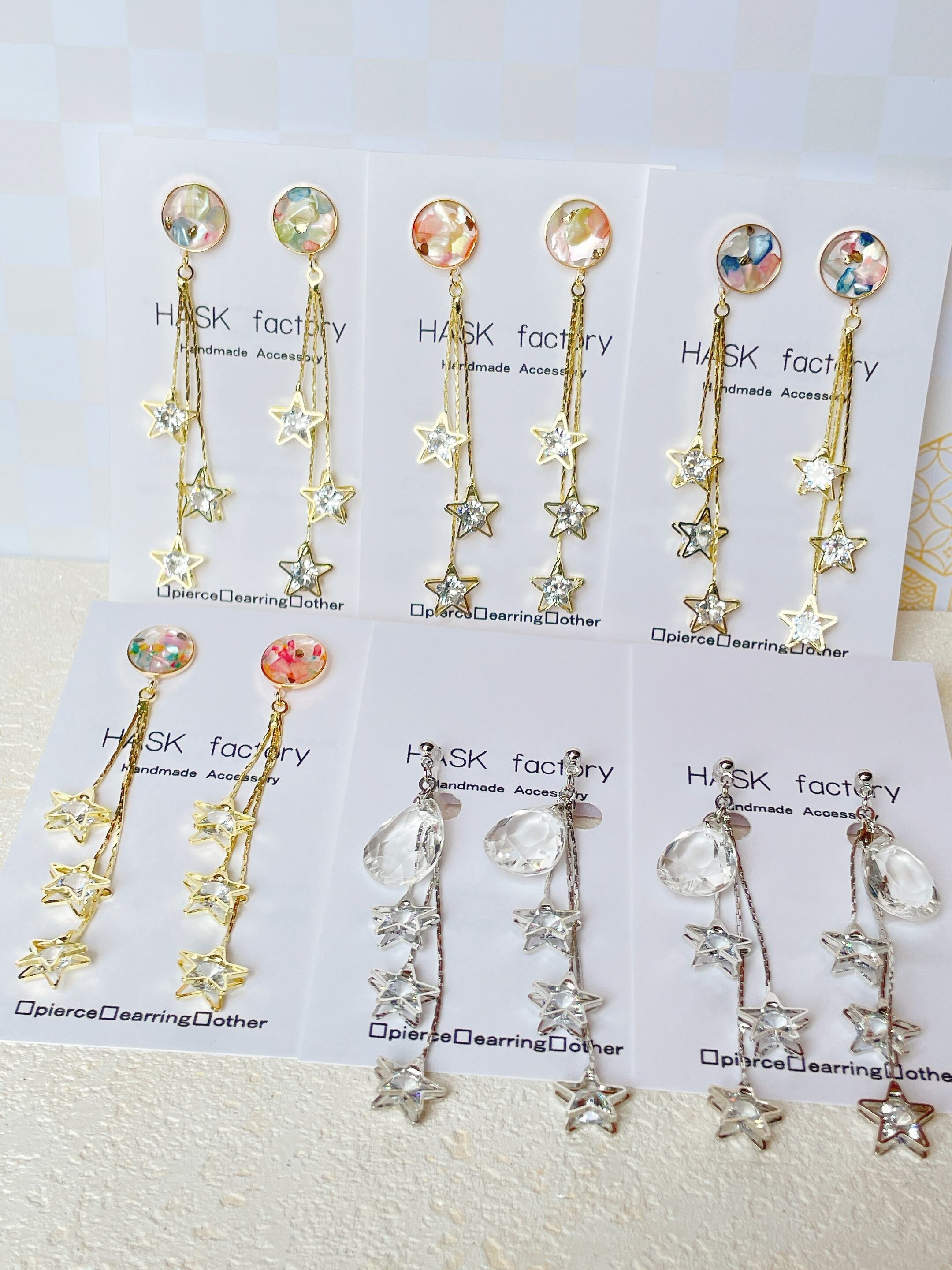 컬러풀한 쉘과 반짝반짝 빛나는 별들이 흔들리는, 봄다운 귀걸이가 등장했습니다!