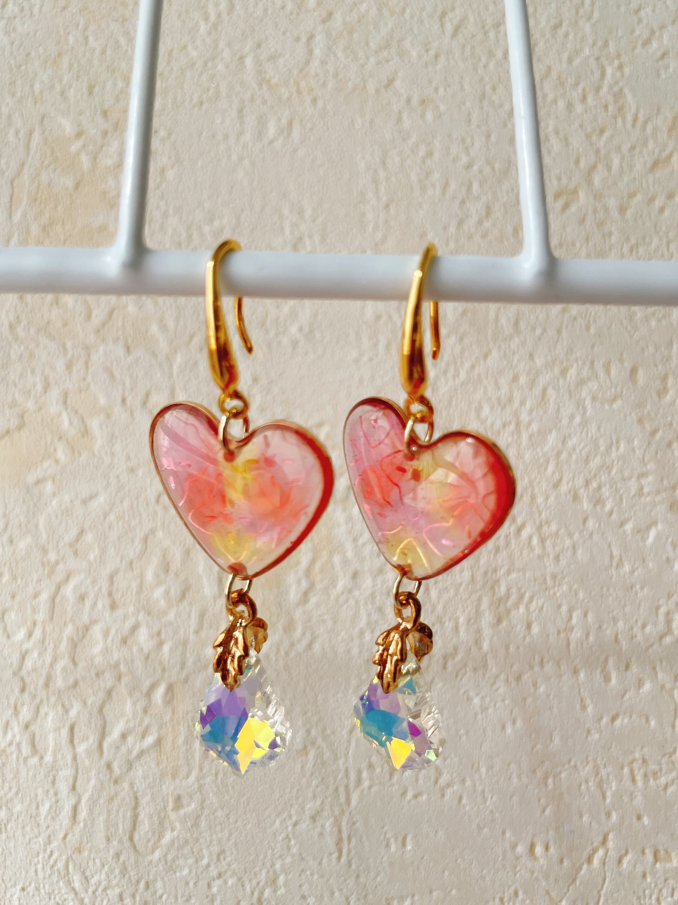 하트의 반짝반짝 귀걸이는, 와시로 색칠된 하트와, 빛나는 매력이 흔들리는 귀여운 디자인이 매력입니다.