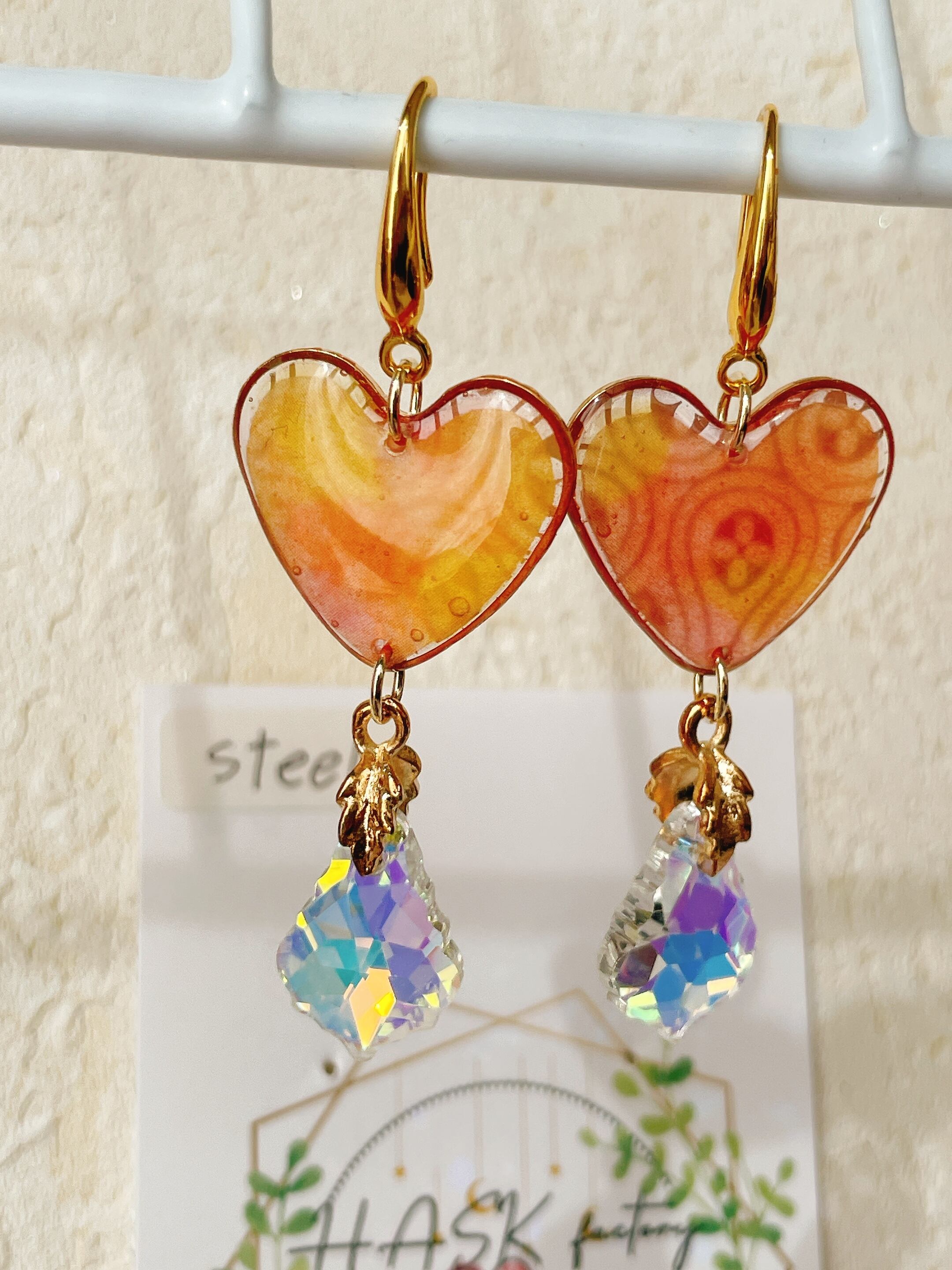 하트의 반짝반짝 귀걸이는, 와시로 색칠된 하트와, 빛나는 매력이 흔들리는 귀여운 디자인이 매력입니다.