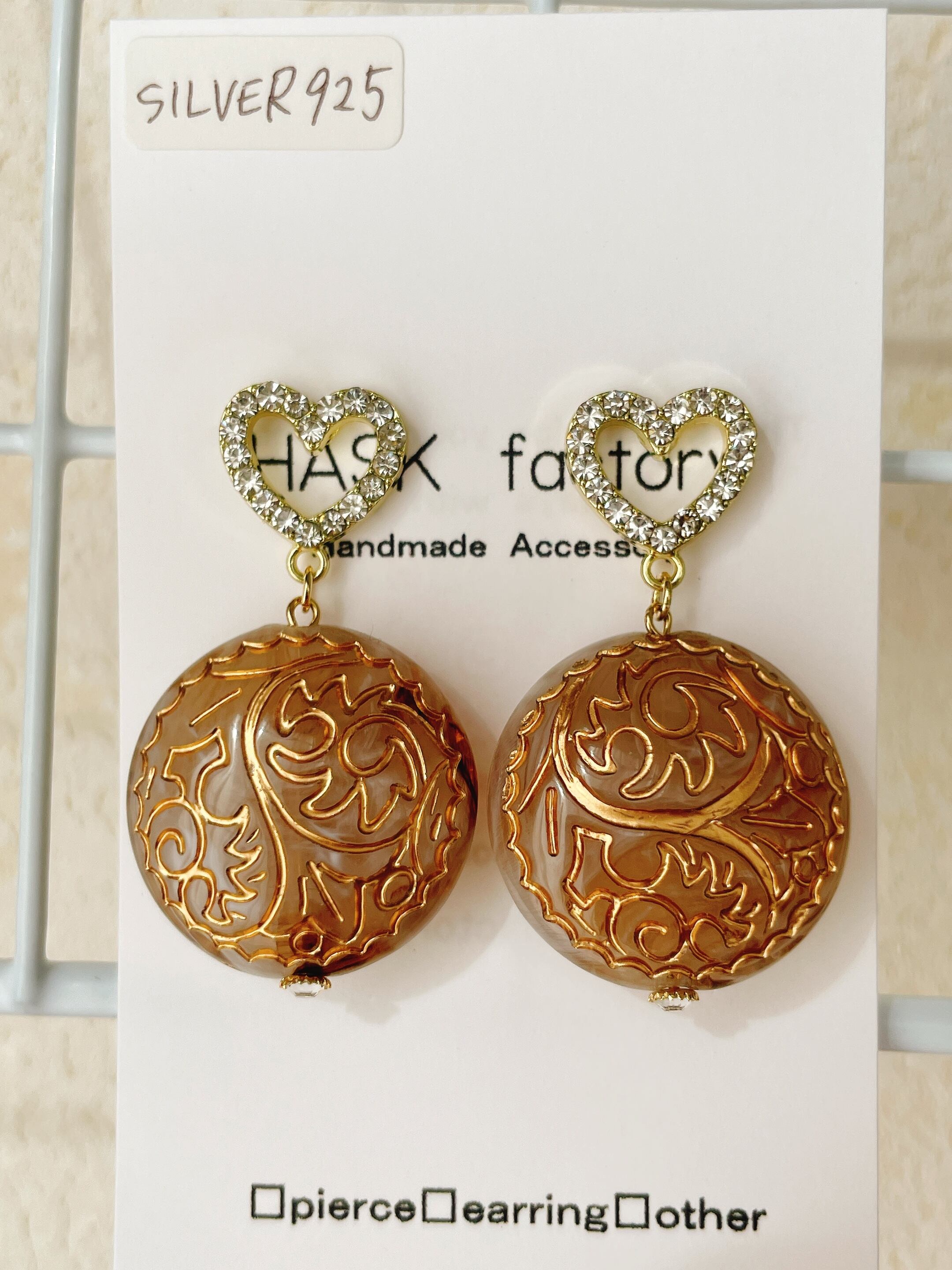 코인비즈와 반짝반짝 하트를 맞춘 귀걸이입니다.