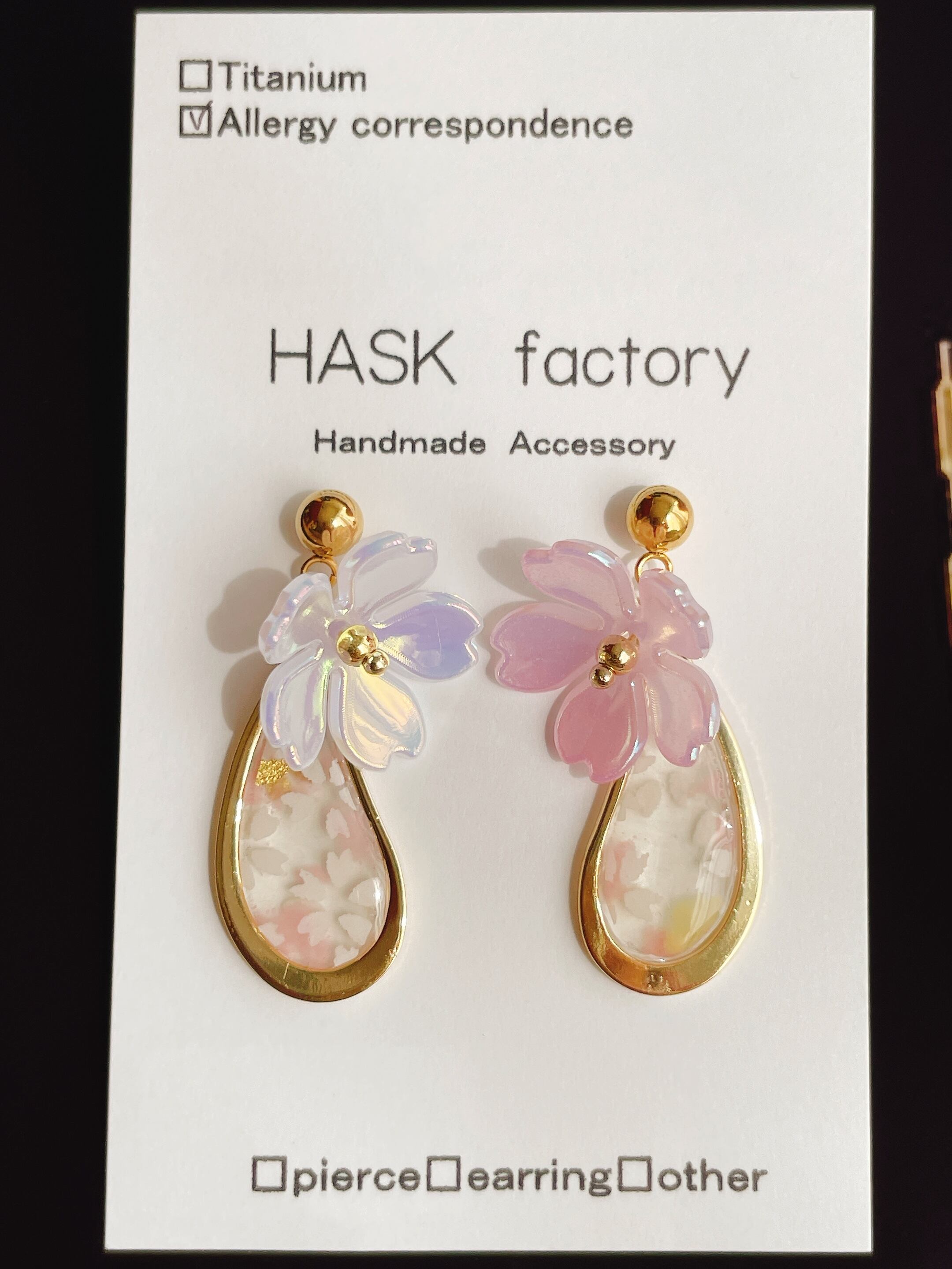 這個櫻花耳環是以日本傳統的櫻花為主題,一個一個精心製作的。 每當佩戴者耳邊搖晃時,都能感受到櫻花盛開的春天的特別飾品。
