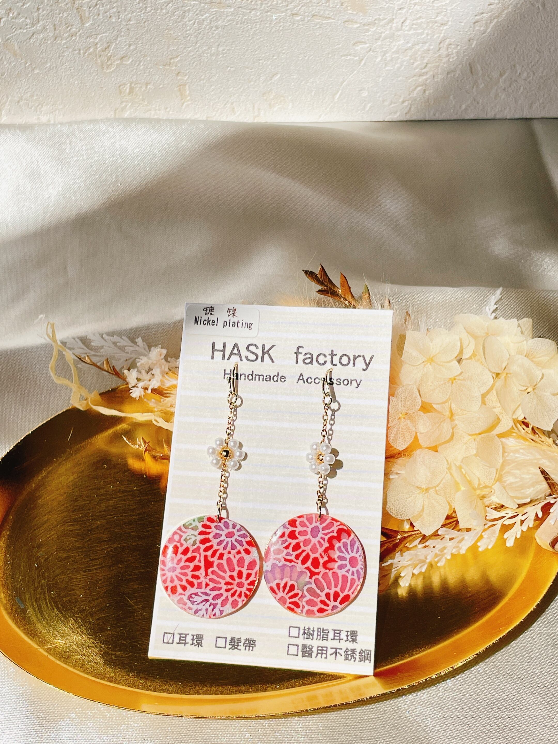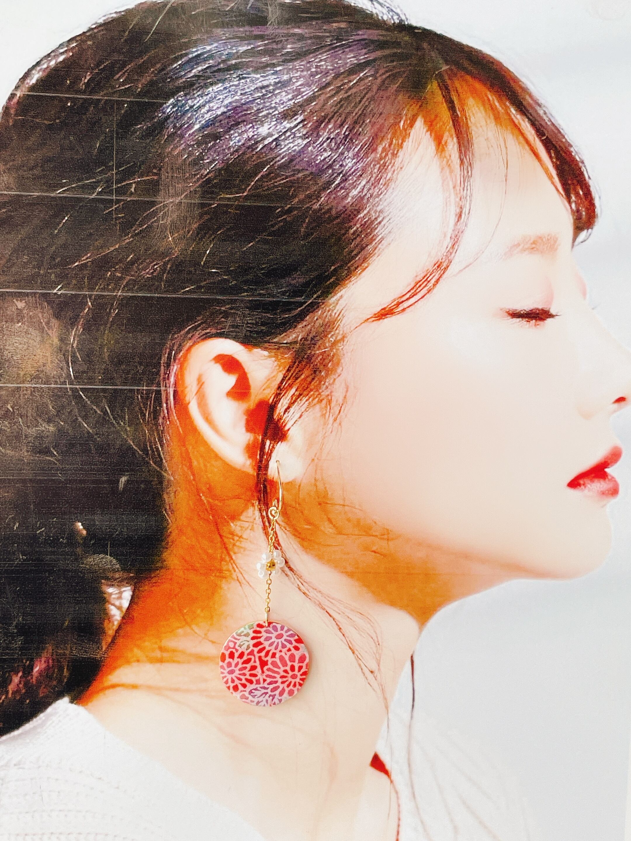 和紙圓圈耳環的正面設計不同,獨特的設計是其特徵。 乍一看設計很簡單,但轉身就能看到漂亮的和紙圖案的訣簕是重點。 左右耳環的設計各不相同,是能展現出不經意的時尚感的單品。
