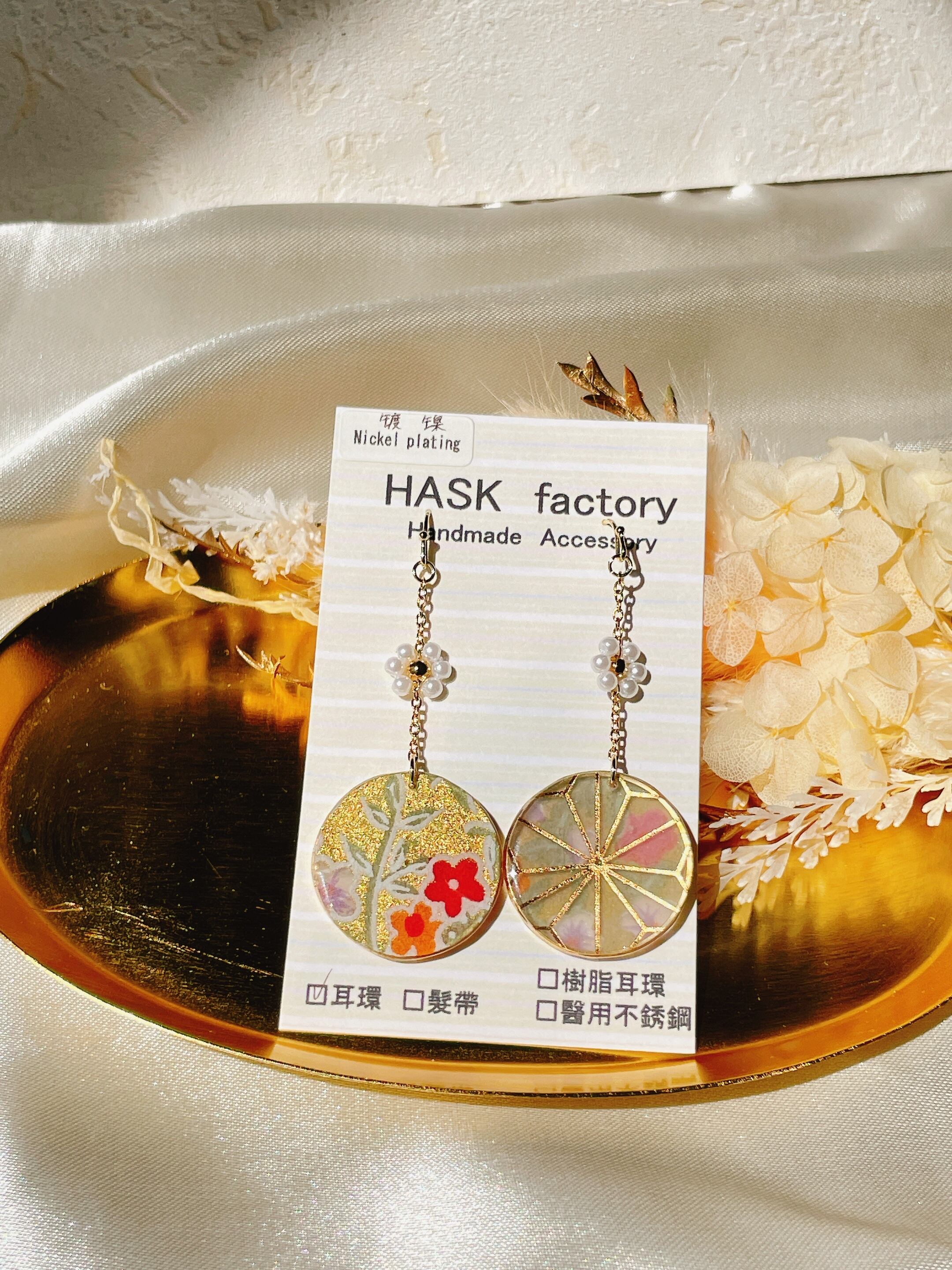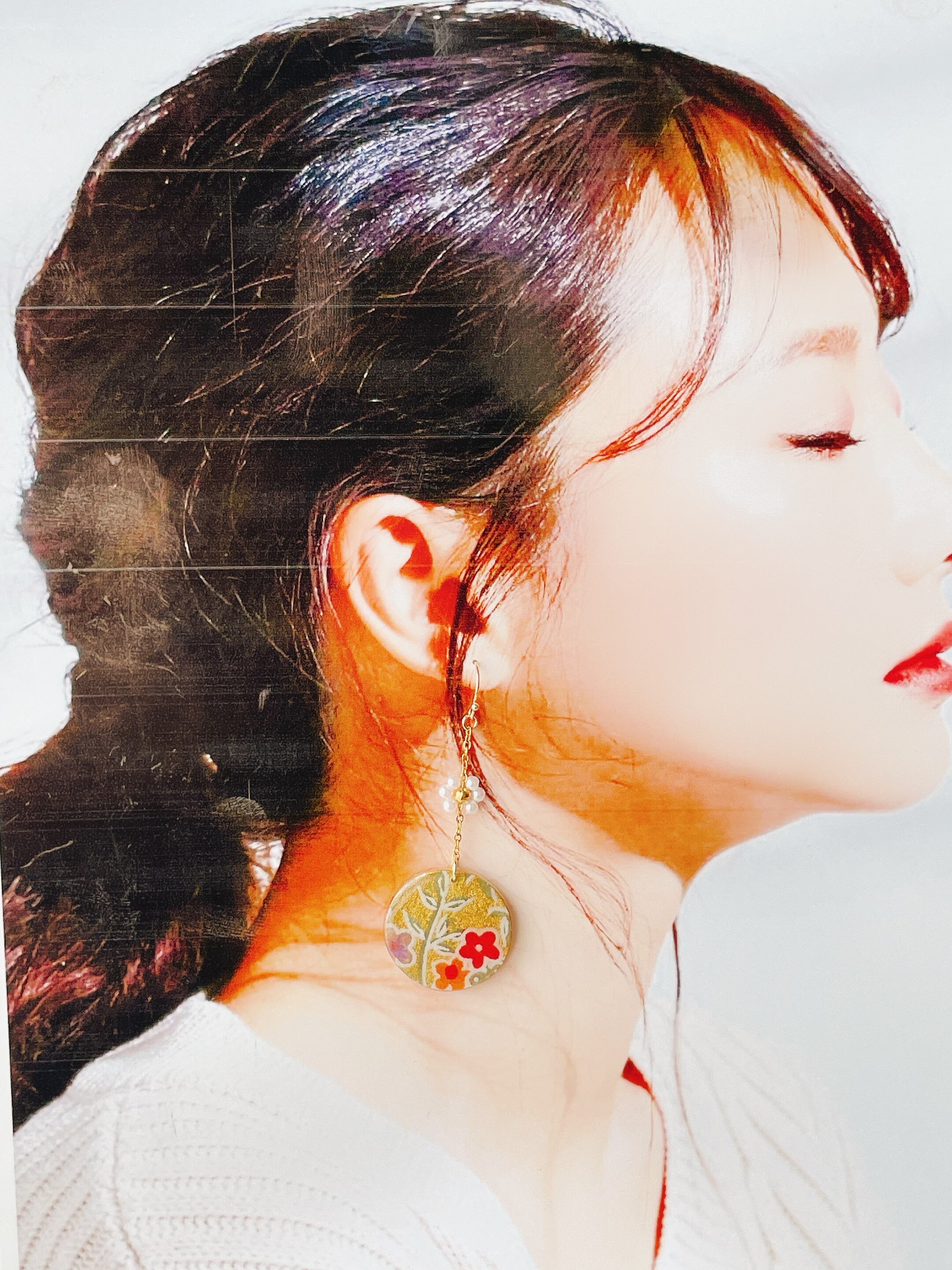 和紙圓圈耳環的正面設計不同,獨特的設計是其特徵。 乍一看設計很簡單,但轉身就能看到漂亮的和紙圖案的訣簕是重點。 左右耳環的設計各不相同,是能展現出不經意的時尚感的單品。