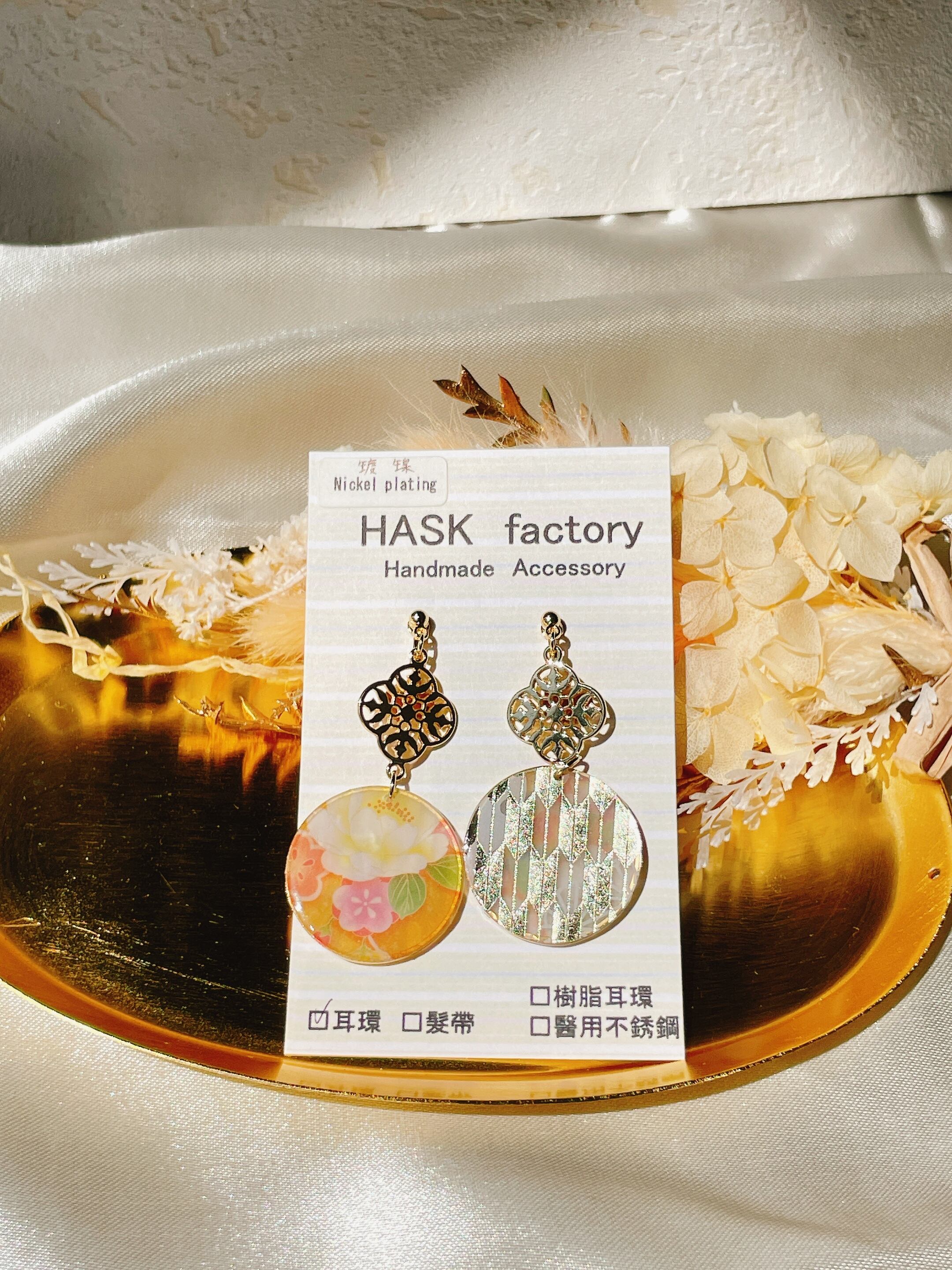 和紙サークルピアスは裏表デザインの違う、ユニークなデザインが特徴です。一見シンプルなデザインですが、振り向きざまに素敵な和紙柄が見えるという仕掛けがポイントです。左右のピアスがそれぞれ異なるデザインなので、さりげないおしゃれを演出できるアイテムです。