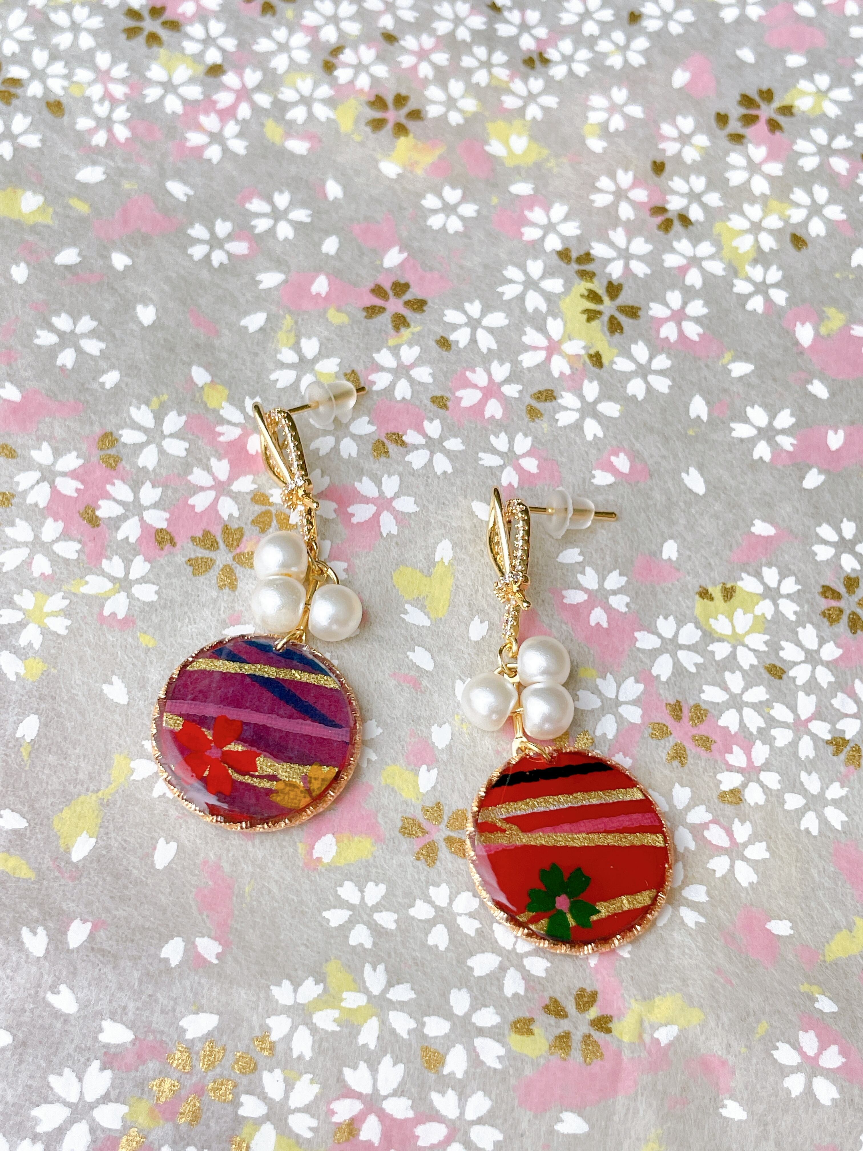 和を感じさせる和紙を使用した、直径18mmのサークル型のピアスが新登場しました。